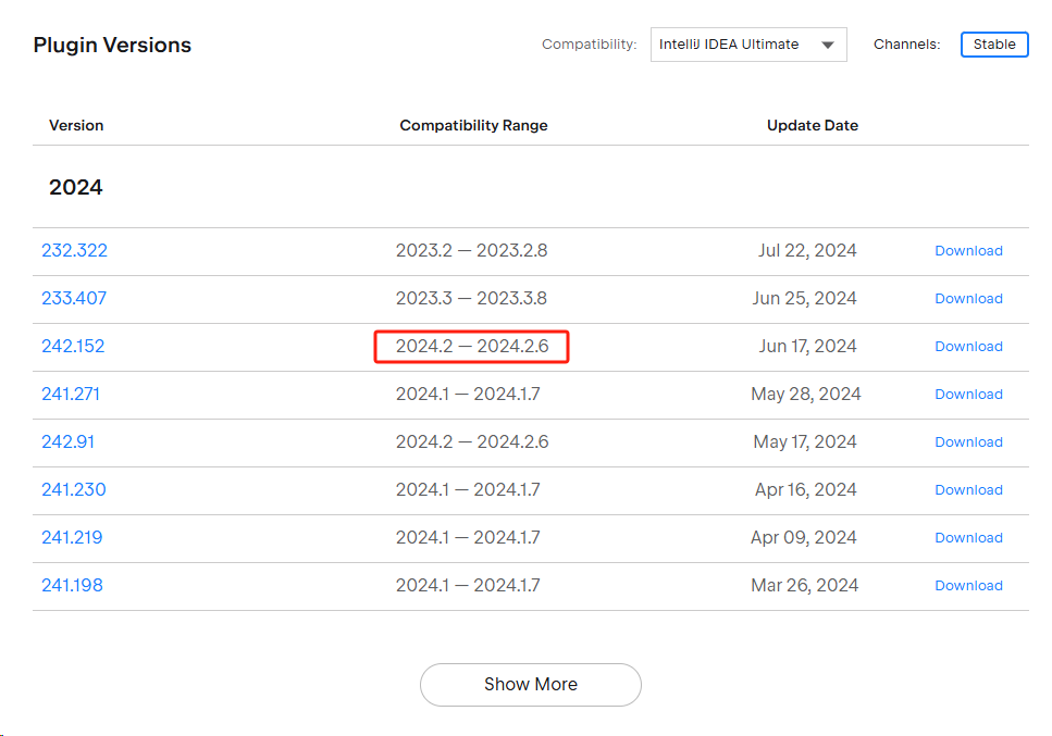 插件历史版本链接:Chinese (Simplified) Language Pack / 中文语言包 Plugin for JetBrains IDEs | JetBrains Marketplace