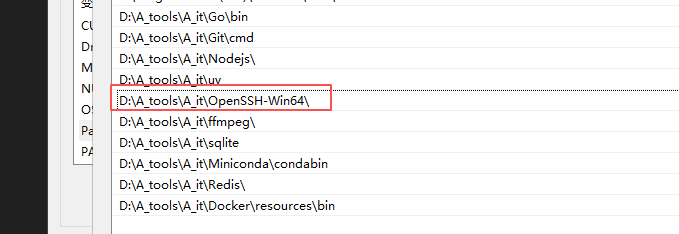 关于我看到的一些博客是在 Vscode IDE 环境下额外设置 OpenSSH 的路径,但是像 Cursor 、Trae 等基于 Vscode 魔改的 IDE ,把设置给阉割了,但是调用SSH程序的本质还是在系统环境中查找 ssh.exe 文件,所以最佳的解决办法是将解压目录路径放于系统环境变量中即可,如下图所示: